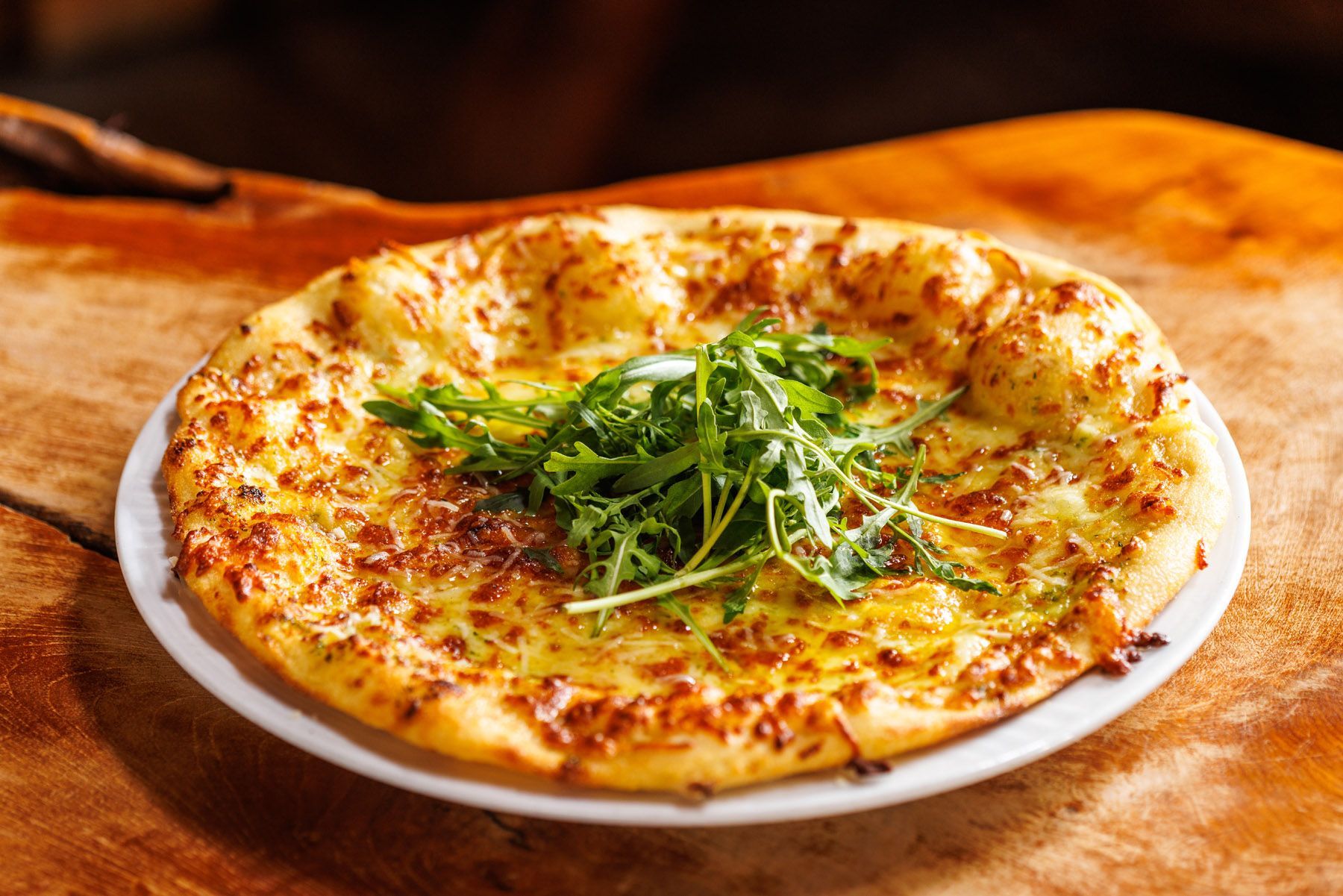 Pizza, Skinka, rjómaostur, döðlur og klettasalat