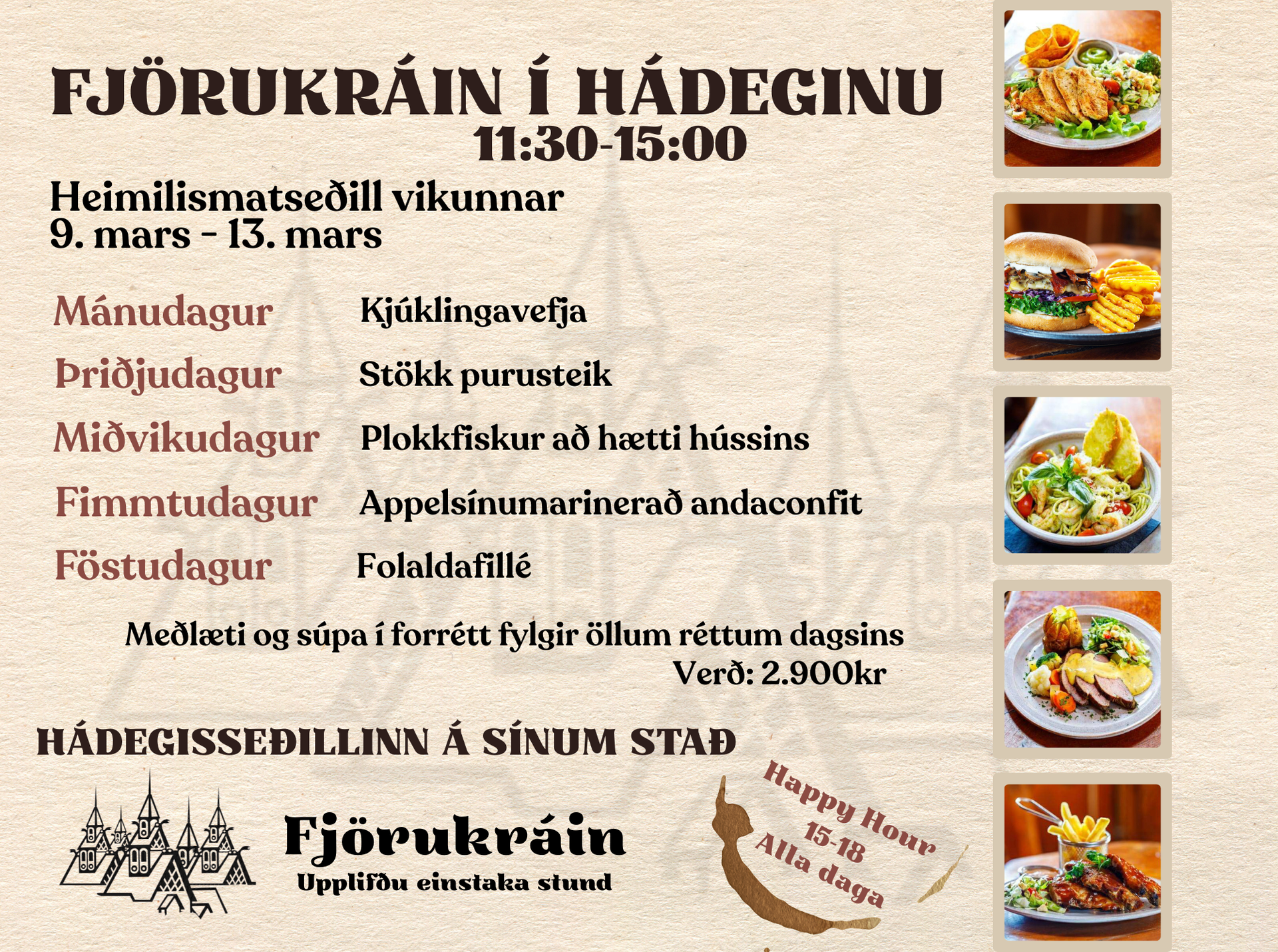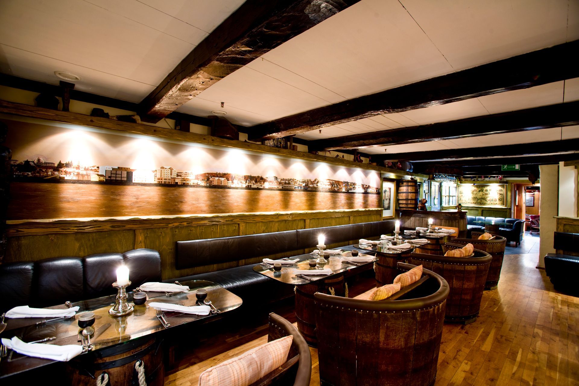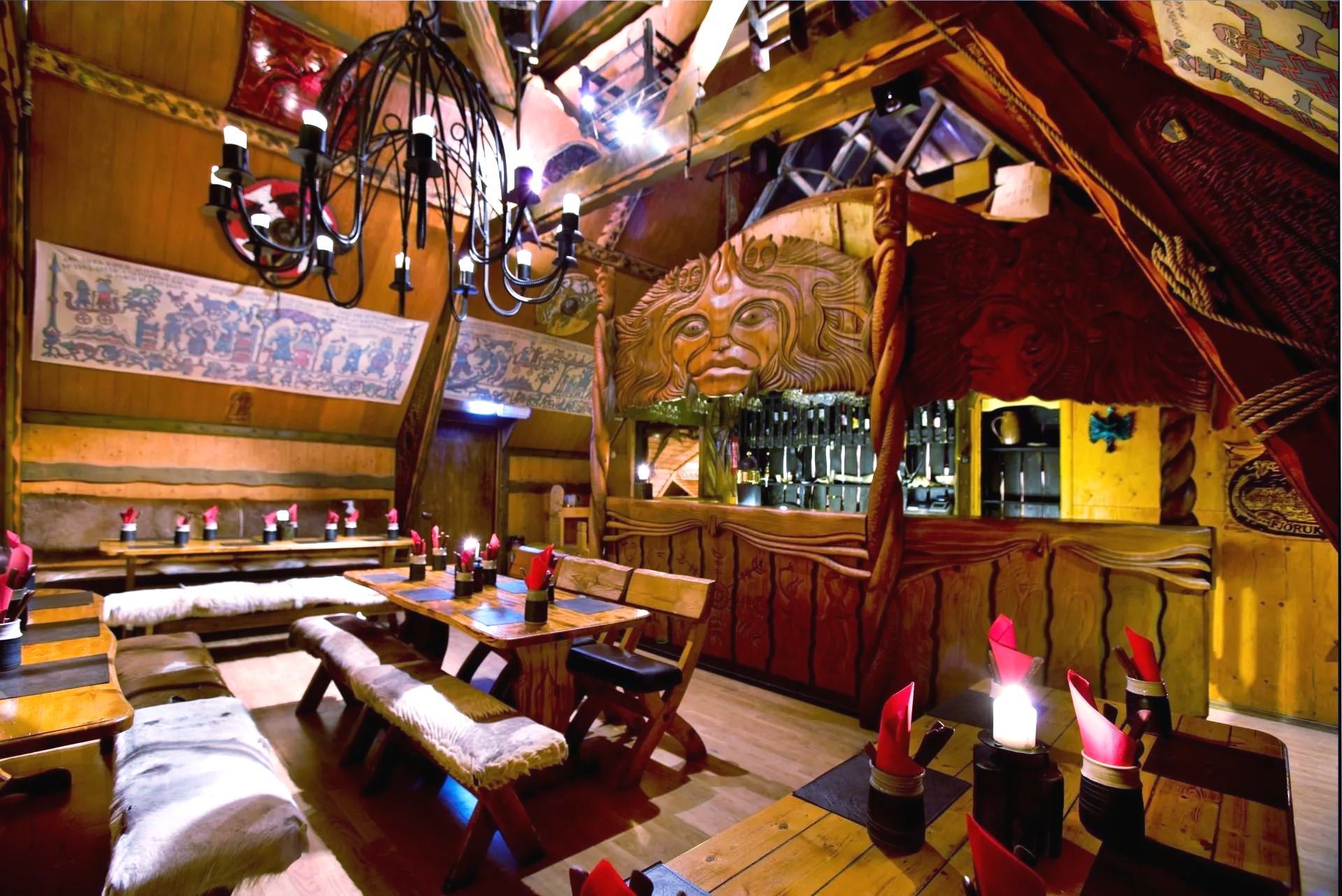 A open doorway is between Valhalla and Fjörugarðurinn so guests can also enjoy all that Fjörugarðurinn has to offer, as well the special atmosphere of Valhalla. Valhalla is an elegant restaurant where the décor is made from a hundred years old snuff-and wine barrels. The walls downstairs are decorated with paintings directly on the walls, of Hafnarfjörður by Lukas Gucio Gordon and Æsir´s feast by Elísa Ósk Viðarsdóttir.